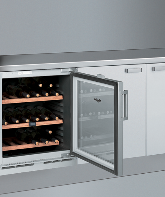 لا حاجة للنزول إلى الطابق السفلي لإحضار المشروب العريق (أو غير العريق) - حيث يمكنك وضع الزجاجات تحت سطح العمل ليتم تخزينها في درجة الحرارة المناسبة.